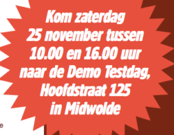 Laat je ons weten of je naar de Demo Testdag komt? Meld je aan op onze buurtpagina www.buurkracht.nl/midwolde-pasop of mail ons via duurzsaamactief@midwolde.info.