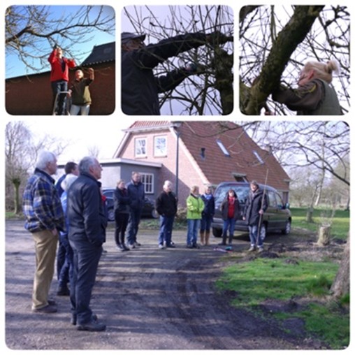 We kwamen uit de startblokken met een jaarlijkse fruitbomen snoei- workshop van Stieneke, een prachtige combinatie van doen, leren en kijken in tuinen van de buren.